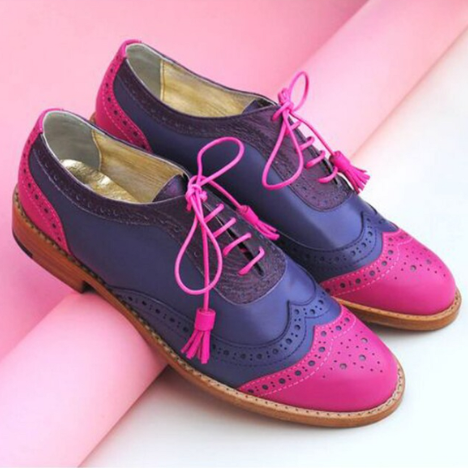Goodyear Welted Women's Blue and Pink Leather Oxford Lace up Brogue Dress Shoes