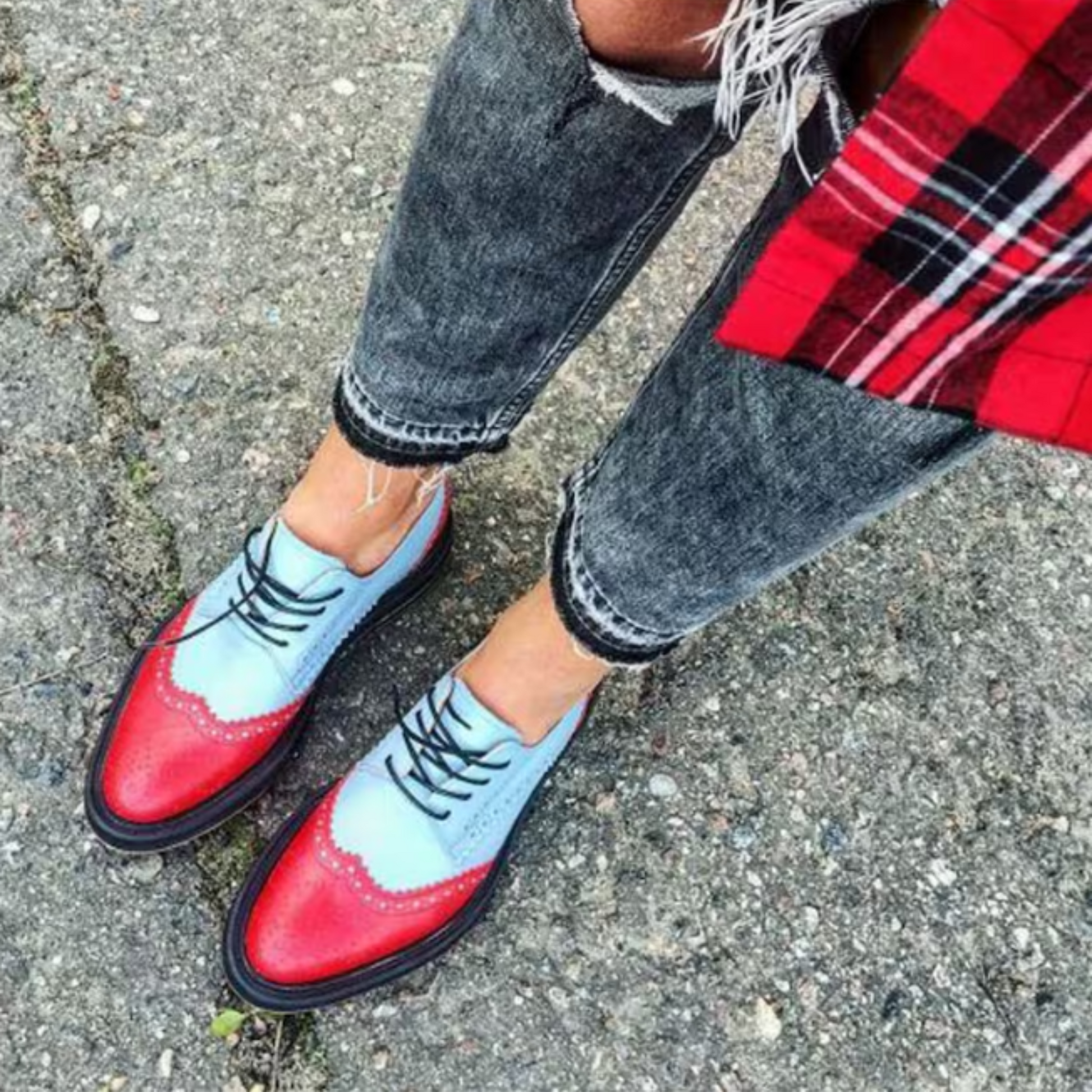 Goodyear Welted Women's Sky Blue and Red Leather Oxford Lace up Dress Shoes